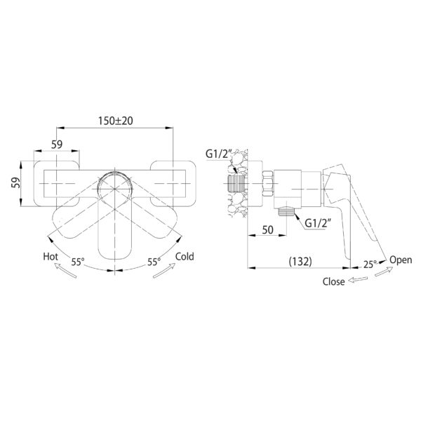 Single lever wall-mounted shower mixer
